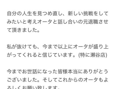 • オータの名物店長さん退社へ