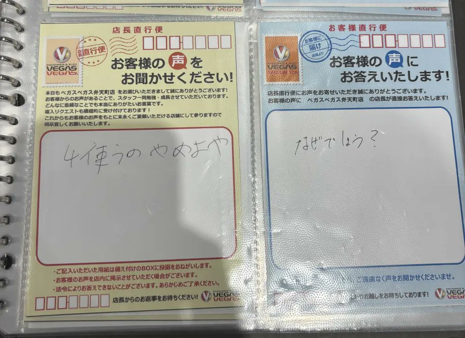 ベガス弁天町店の意見箱おもしろいwww pic.twitter.com/riEeaMas5D