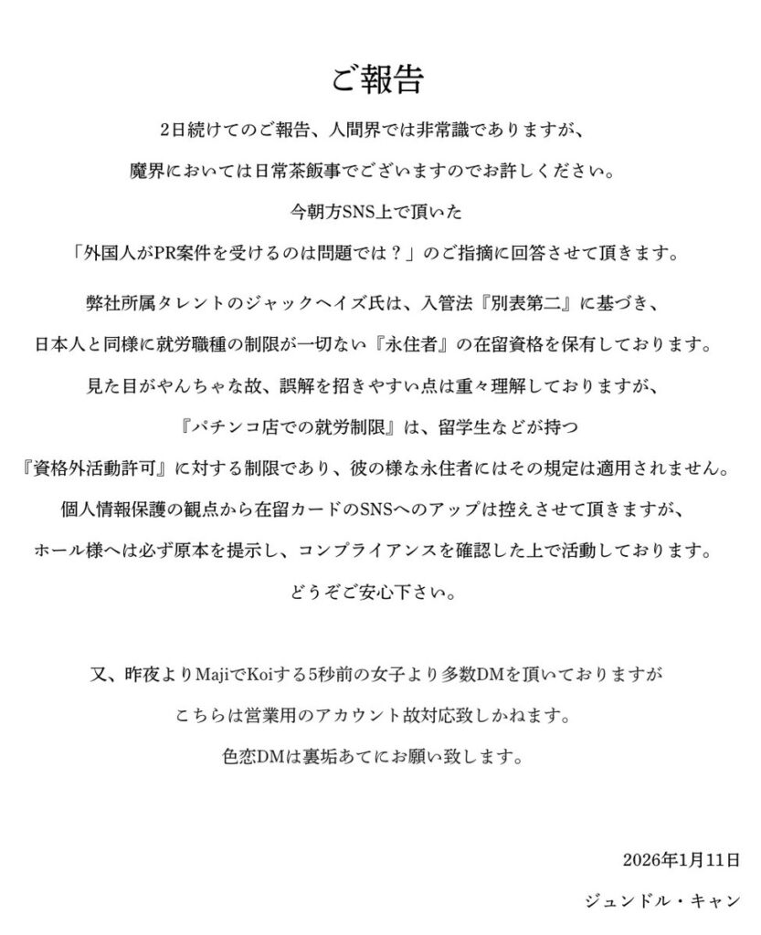 僕に代わってありがとうございます🙏🏻— ジャックヘイズ😶🌫️@サバト🎰 (@jack_haze6) January 11, 2026
