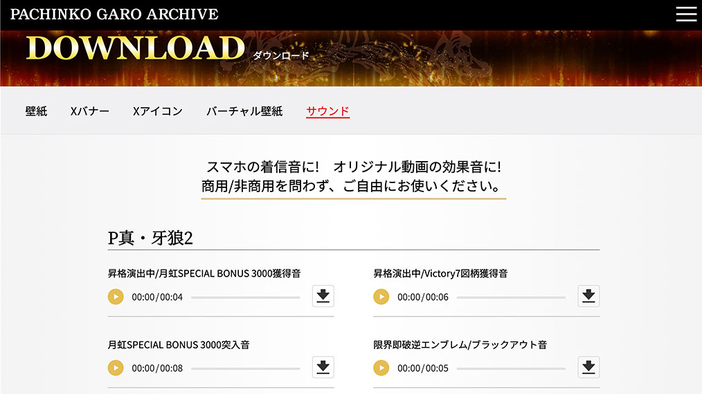 【パチンコ牙狼アーカイブ】 ダウンロードページに【P真・牙狼2】の「サウンド」データを追加!!https://t.co/ ...